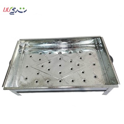 4 : دارای سوراخ های ریزی در کف منقل می باشد که خاکستر زغال به پایین آن ، یعنی روی سینی می ریزد و در پایان کار می توانید خاکستر زغال را دور بریزید