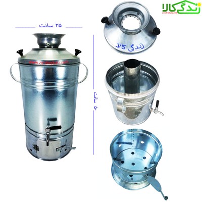 این سماور از ورق فولادی گالوانیزه به ضخامت ورق 50 ساخته شده ،ضد زنگ می باشد